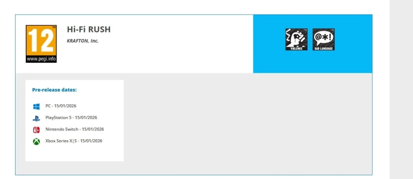 Обложка: постер Hi-Fi RushРано или поздно Hi-Fi Rush может выйти на Nintendo Switch, о чём говорит повторная выдача возрастного рейтинга PEGI. На первый взгляд это лишь юридическая формальность, связанная с переходом прав на игру в руки Krafton (она выкупила франшизу и студию Tango Gameworks после закрытия в 2024 году). Однако список платформ раскрыл возможную разработку порта для гибридной консоли.