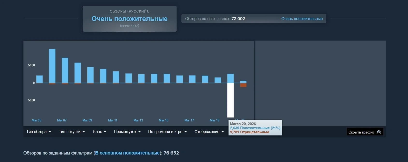 Не все игроки оказались рады изменениям баланса и устроили ревью-бомбинг в Steam. После более 10 тыс. негативных обзоров рейтинг Slay the Spire 2 опустился до «в основном положительного».
